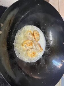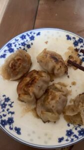 • 煎的过程中可以转动锅,让油均匀分布在饺子下面,锅动水饺不动